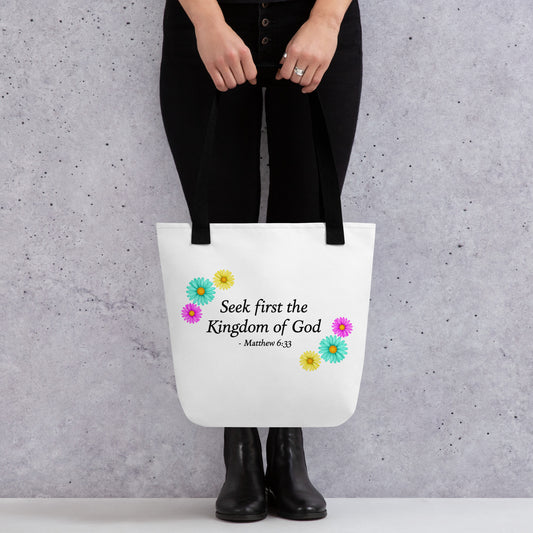 Seek First the Kingdom of God, Matthew 6:33, Tote bag